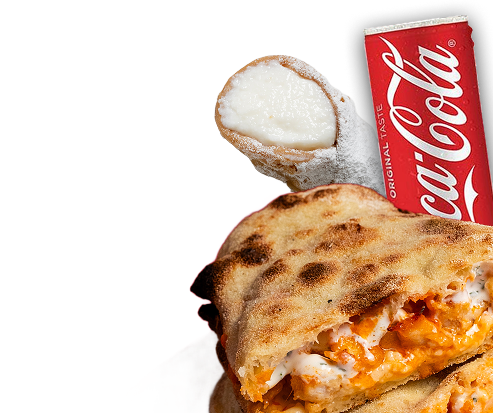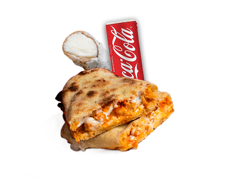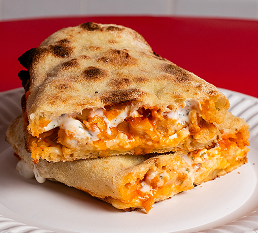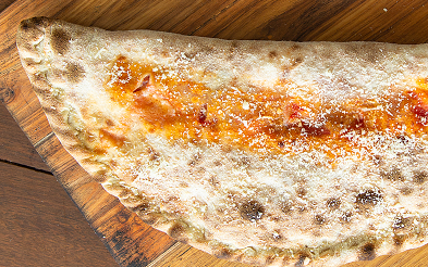 A folded pizza stuffed with generous amounts of mozzarella, ricotta, parmesan, house-made tomato sauce, basil and olive oil