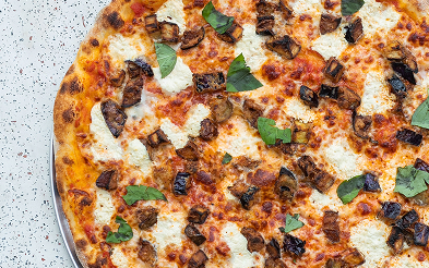 House-made tomato sauce, mozzarella, parmesan, basil, olive oil, fried eggplant with creamy dollops of ricotta
