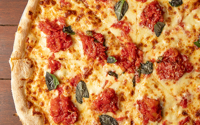 Double the cheese of a normal pie with chunky garlicky house-made tomato sauce on top