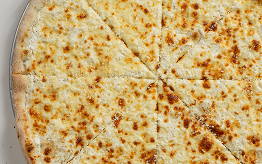 Mozzarella, parmesan, roasted garlic and butter on a crispy dough