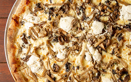 Four types of mushrooms, truffle oil, mozzarella, ricotta