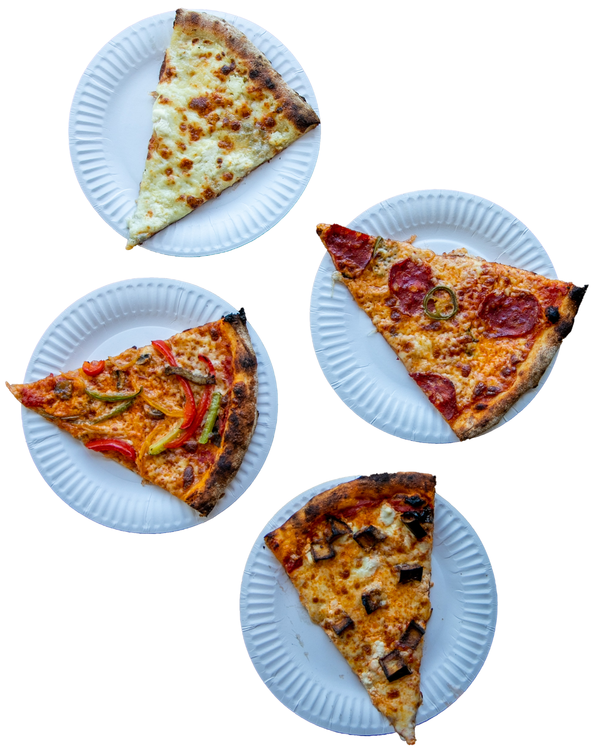 House-made tomato sauce, mozzarella, parmesan, basil, olive oil, red, yellow & green peppers, onions, zucchini, mushrooms, eggplant