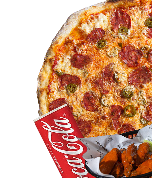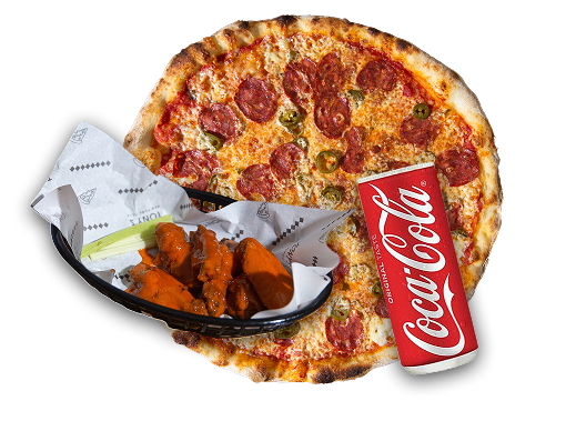 Any 9 inch pizza + 6 pcs wings + soft drink