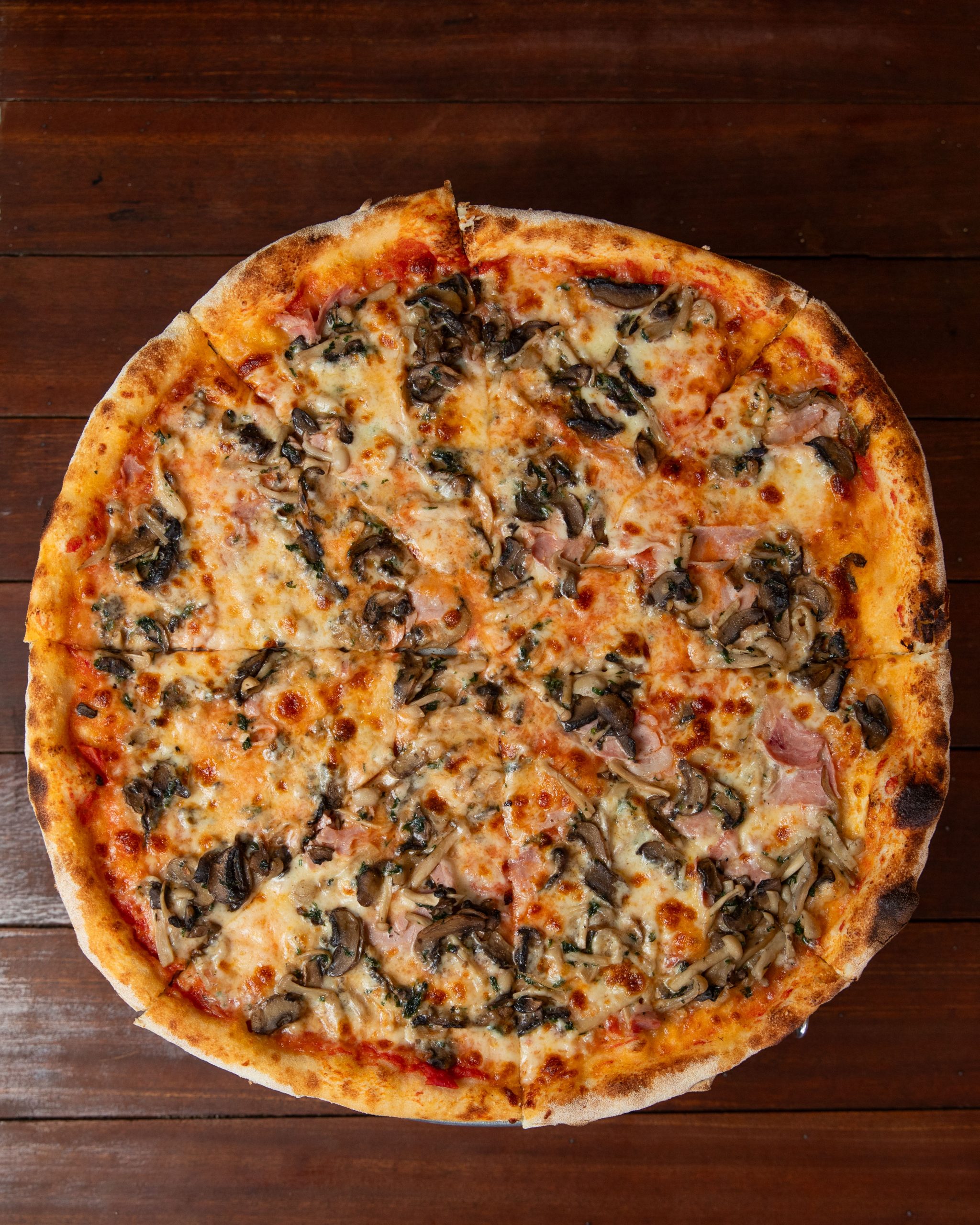 House-made tomato sauce, mozzarella, ham, mixed mushrooms
