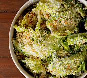 Baby romaine, caesar dressing, parmesan, croutons. Add bacon crumble/chicken