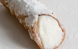 Sicilian pastry filled with sweet ricotta, topped with icing sugar