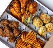 Waffle fries, chicken bites, garlic knots, your choice of wings, served with ketchup and marinara sauce